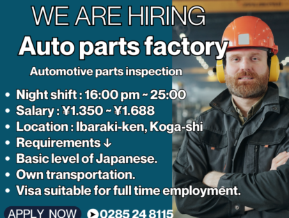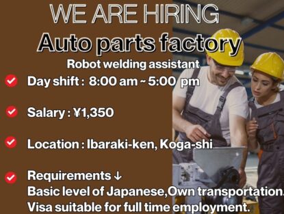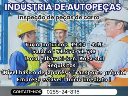 【IBARAKI-KEN ,KOGA-SHI 】Salario ¥1,350 yenes la hora ・Turno de dia ・Fabrica de autopartes