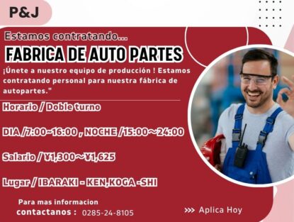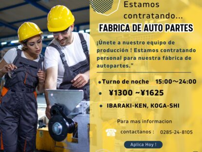【Ibaraki-ken,Koga-shi】Salary: ¥1,300 ~ 1,625 yen / hour ・2 shift rotation ・Auto parts factory・Spot welding